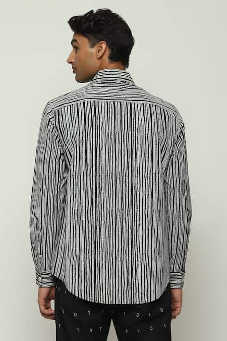 Black Cotton Embroidery Crewel Print Full Sleeve Shirt