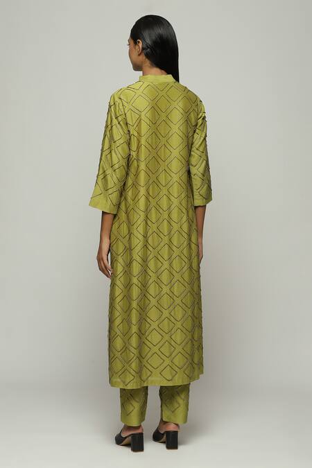 Green Chanderi Embroidery Mandarin Collar Cut Dana Shirt