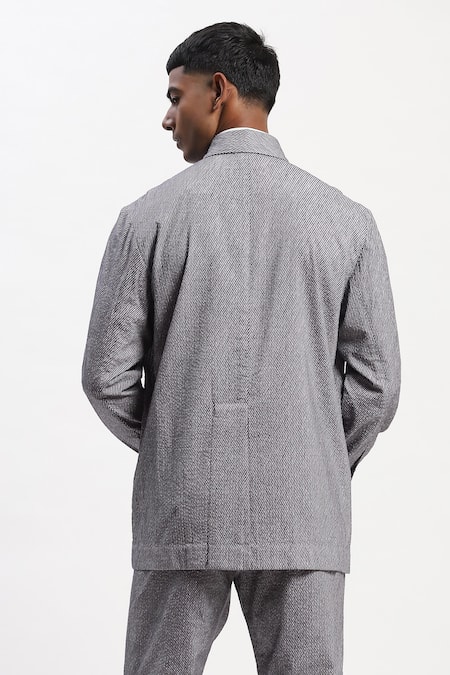 Multi jacket featuring hand-drawn diagonal lines in a textured cotton seersucker fabric