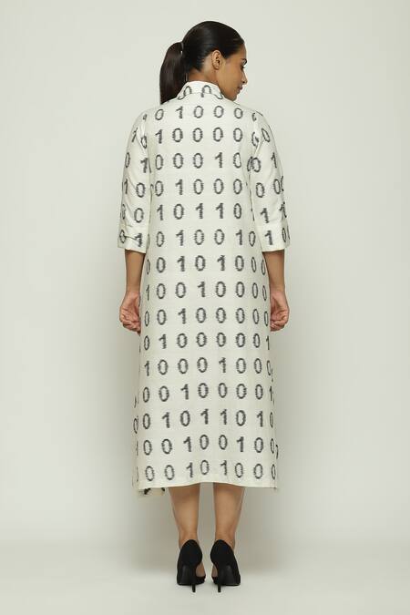 Black Silk, Cotton Collared Ikat Code Pattern Shirt Dress