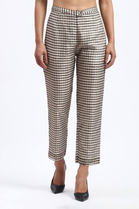 Multi color trouser made from Chanderi fabric featuring a checkered pattern
