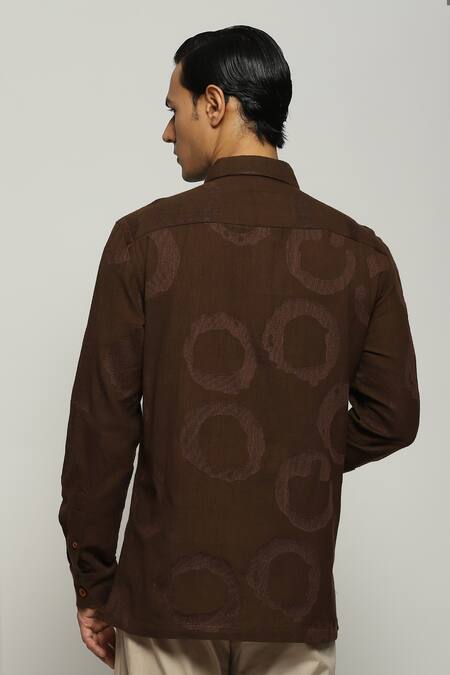 Brown shirt featuring full sleeves and a collar with an organic rings pattern