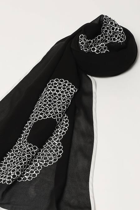 Black scarf made from silk georgette featuring sequin circlet bloom embellishments