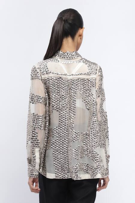 Ivory shirt made from organza featuring intricate sequin embroidery