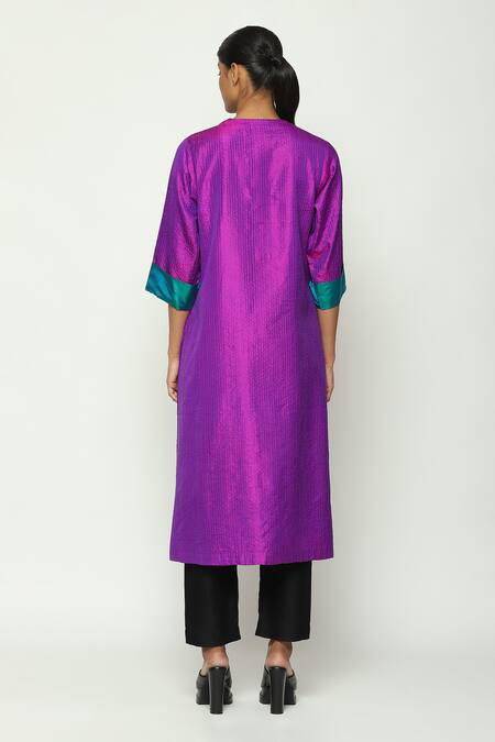 Purple Silk Embroidery Round Neck Shot Stitchline Thread Work Kurta