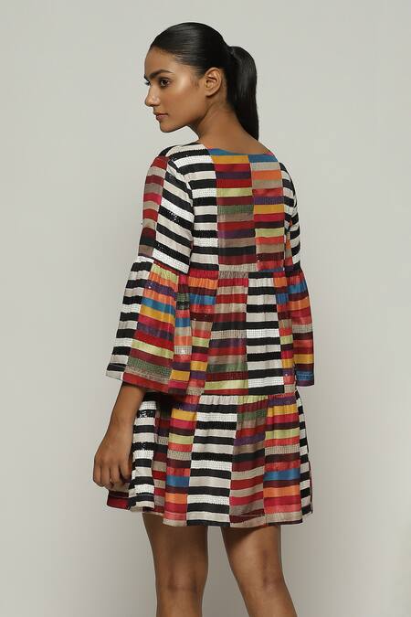Sequin placement embroidery, Side pockets, Bell sleeves