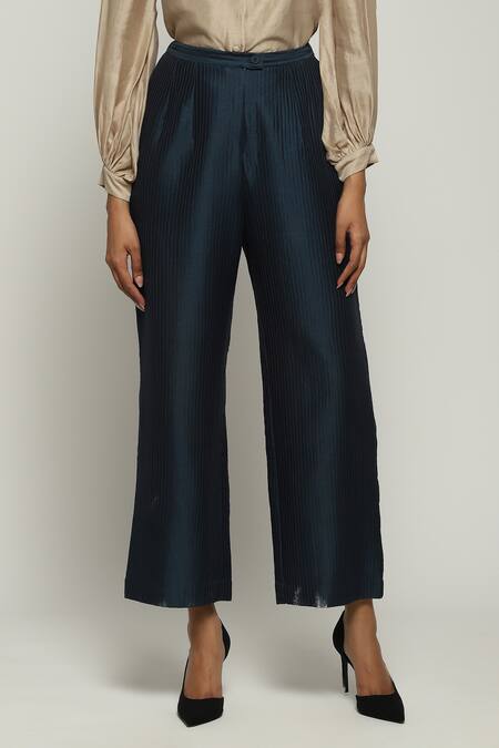 Blue Silk Straight Fit Pant