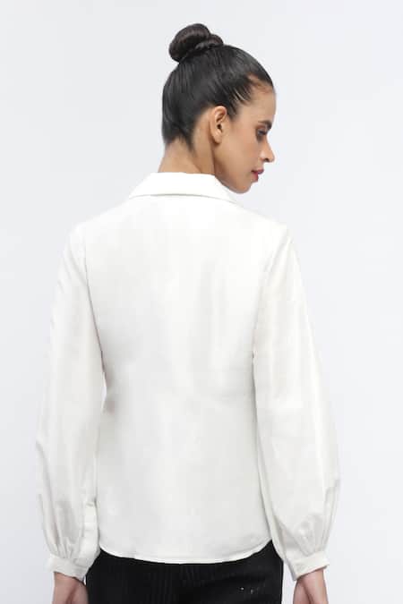 Ivory Silk Sequins Collared Triangle Embroidered Shirt