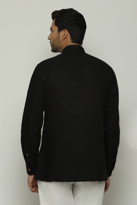Black Twill Embroidery Running Stitch Work Shirt