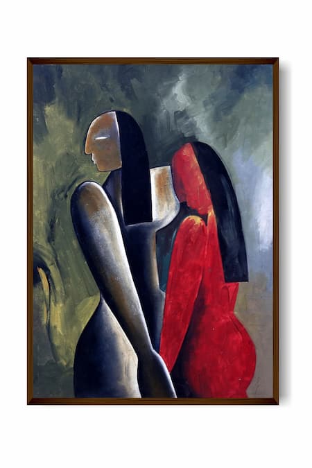 Buy_The Art House_Multi Color Canvas Handmade Abstract Human Figure Painting_Online_at_Aza_Fashions