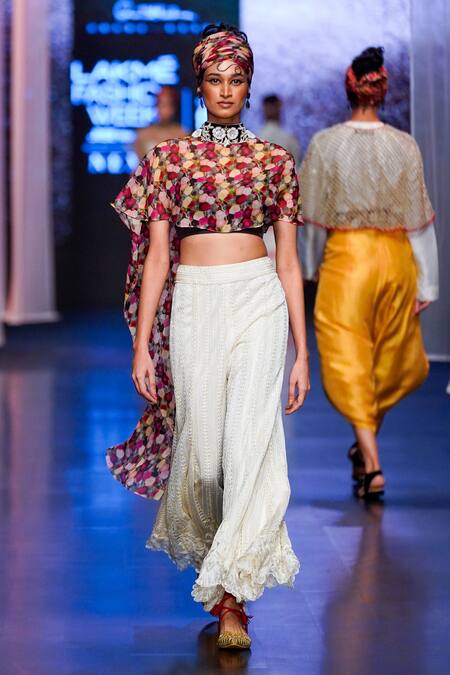 Buy_Anand Kabra_Grey Chiffon And Embroidery Abstract High Cape & Wide Legged Pant Set_at_Aza_Fashions