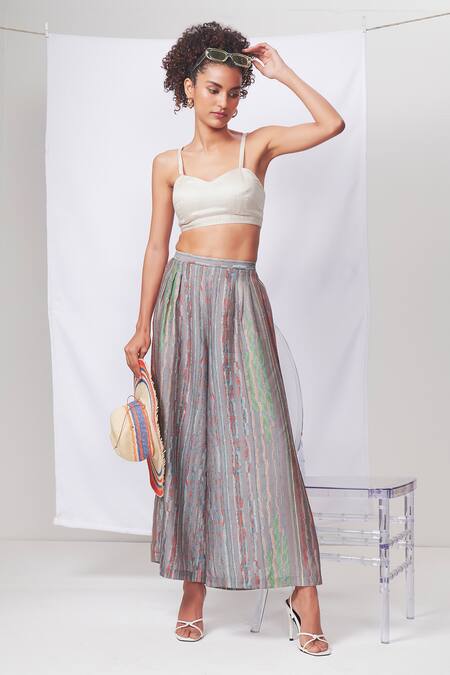 Multi Color Raw Silk Printed Abstract Palazzo