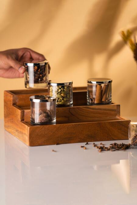 Brown Wood And Glass Acacia Condiment Rack
