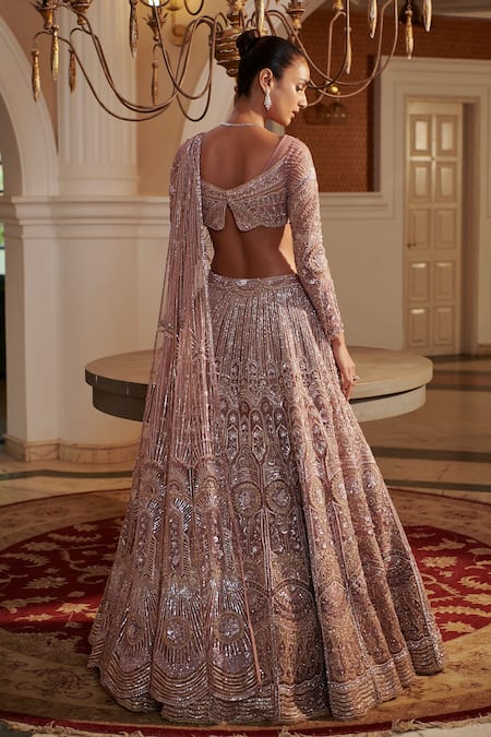 Purple Silk, Net, Georgette Sequins, Zari, Embroidered Blouse Bridal Lehenga Set