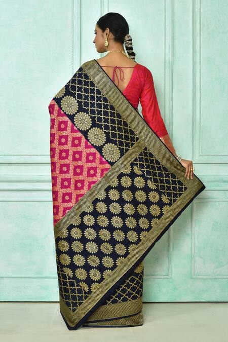 Buy_Samyukta Singhania_Pink Georgette Embroidery Floral Motifs Woven Banarasi Saree With Running Blouse_Online_at_Aza_Fashions