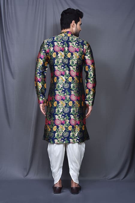 Buy_Arihant Rai Sinha_Blue Silk Embroidery Floral Woven Kurta And Cowl Pant Set _Online_at_Aza_Fashions