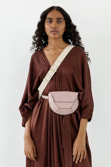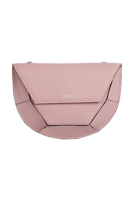 Pink leather handbag featuring a three-dimensional structured design with triangulated geometrical pattern