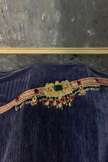 Gold Mirrors, Pearls, Metallic Thread Banarasi Silk Meenakari Belt