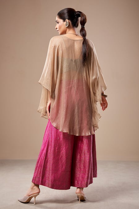 Pink Brocade, Chiffon Embroidery Polka Dot Woven Palazzo Set With Cape