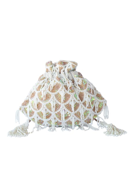 Gold Embroidered Bead Tassel Potli Bag