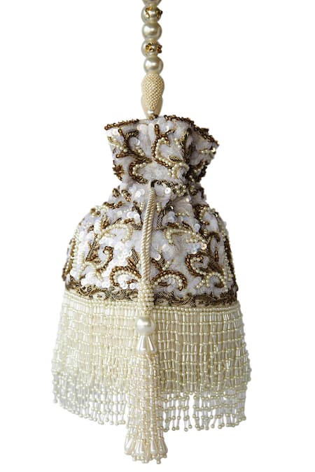 Sequin embroidery detailing, Bead embroidered tassel, Beaded wristlet for easy carrying