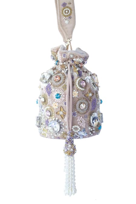 3D floral motifs, All-over pearl and sequin embellishments, Detachable handle