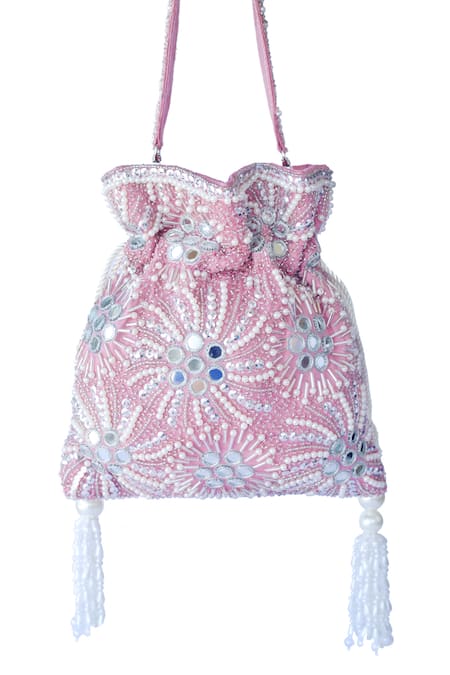 Pink Embroidered Mirror Embellished Polti Bag