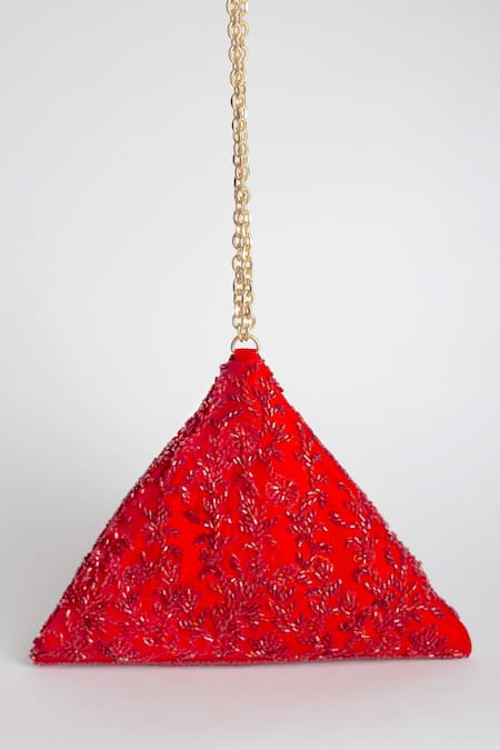 Red potli bag featuring cutdana and sequin embellishments