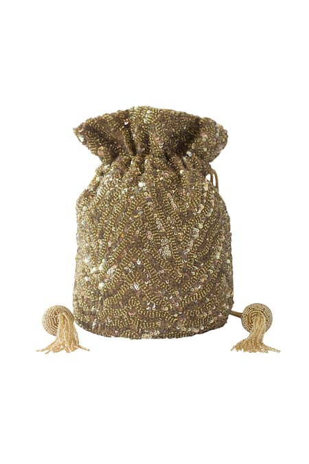 Gold Gota Patti, Sequins Polyester Embroidered Potli Bag