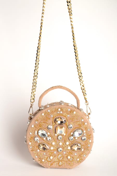 All-over cutdana and stones embellishment, Detachable chain sling, Top handle design