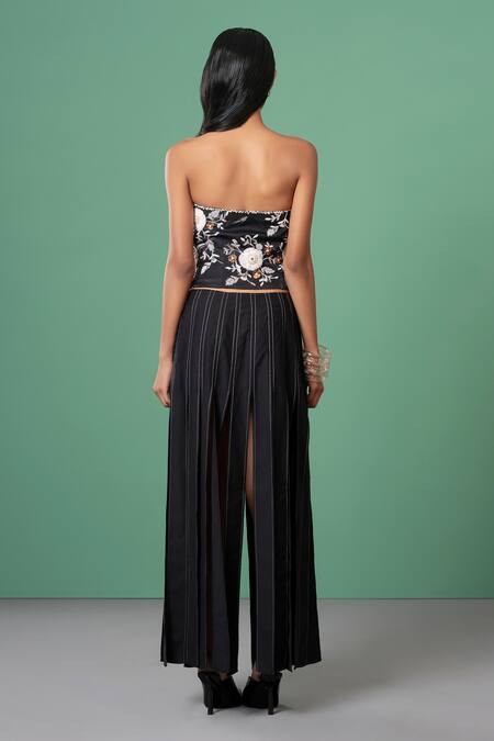 Black ankle-length skirt featuring multiple slits from mid-thigh down, creating a unique shredded effect