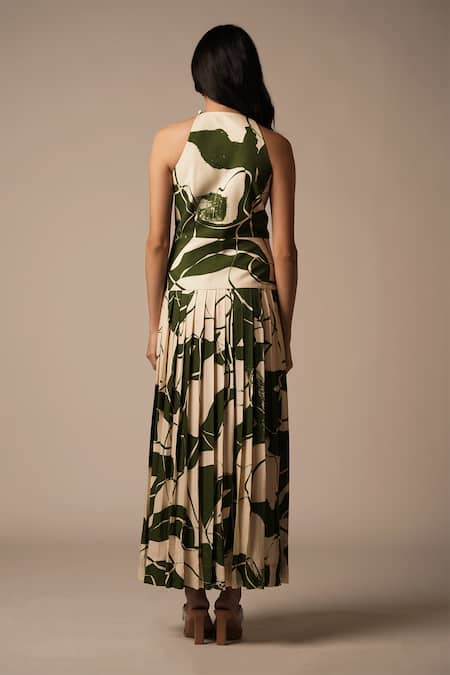 Buy_Advait_Green Rayon Twill Print Abstract Floral Halter Neck Maxi Dress _Online_at_Aza_Fashions