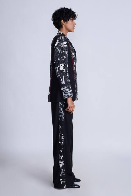 Black Polyester, Cotton Patchwork Placement Print Trouser