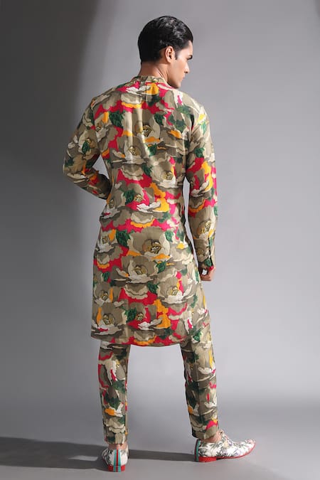 All-over abstract print, Side slits on kurta, Buttoned cuffs