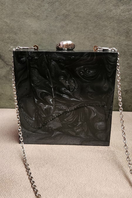 Black designer clutch featuring shell and cutdana embellishments