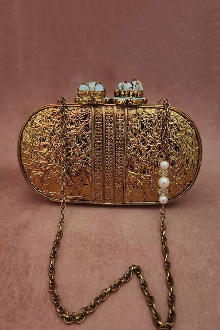 Care: Store your clutch in a soft pouch to avoid scratches. Carefully clean the product with soft cloth. Avoid direct contact with perfumes, any chemicals or water to retain the plating of the product.