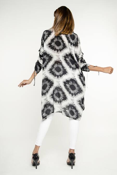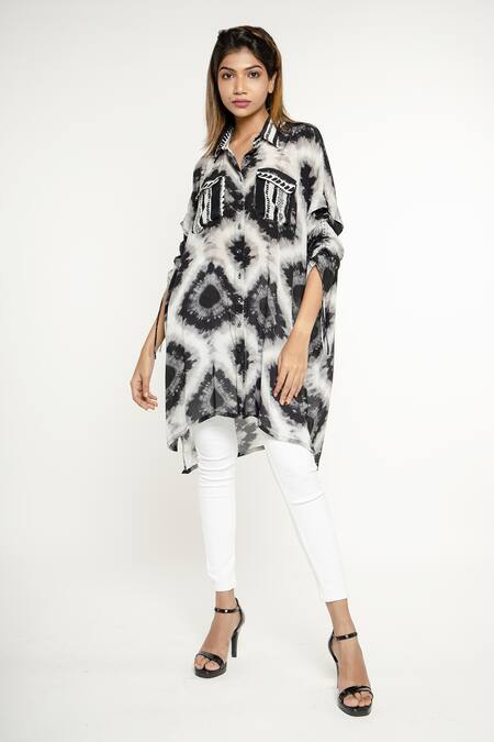 Black Crepe Silk Afia Geometric Pattern Shirt