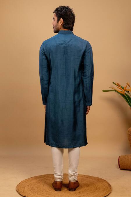 Blue Silk Criss Cross Quilted Kurta And Churidar Set