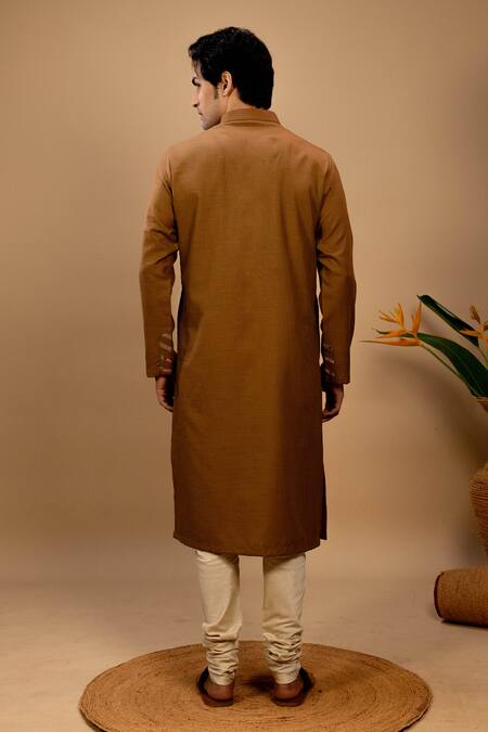 Beige Handloom Cotton Plain Kurta With Churidar