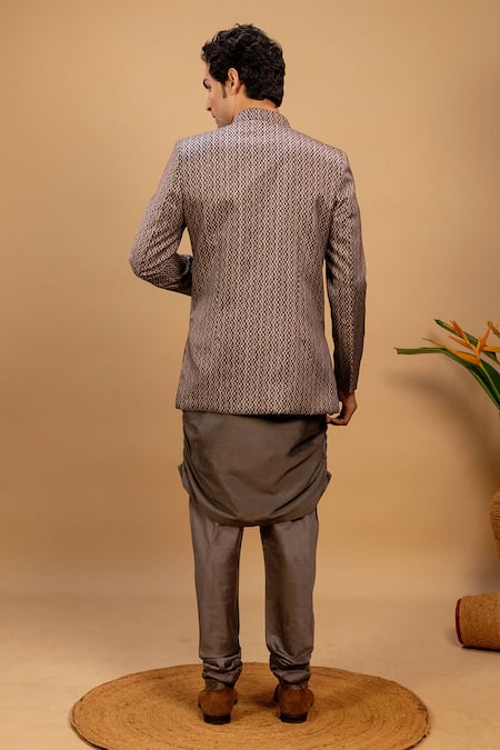 Gray Silk Sequins Embroidered Printed Bundi Churidar Set