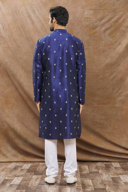 Buy_Aham-Vayam_Blue Silk Blend Floral Kamal Embroidered Kurta Set_at_Aza_Fashions
