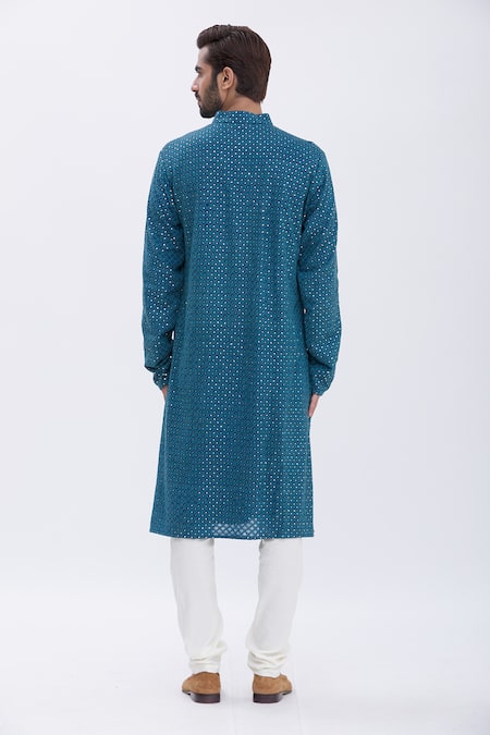 Teal kurta featuring all-over sequins embellishments. Paired with a pyjama.