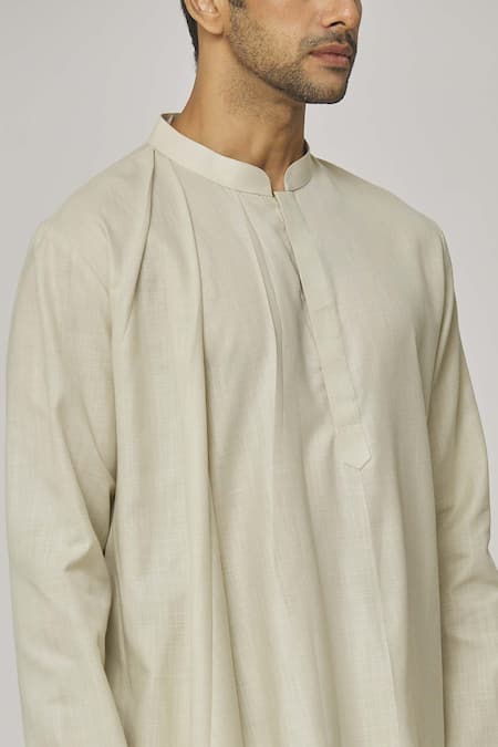 Cream Cotton Tatvam Kaito Solid Kurta And Pyjama Set