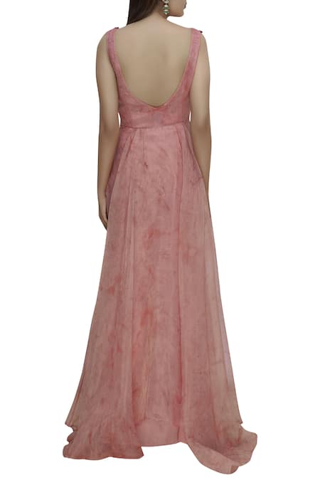 Pink Glass Nylon V-shaped Neckline Embroidered Gown