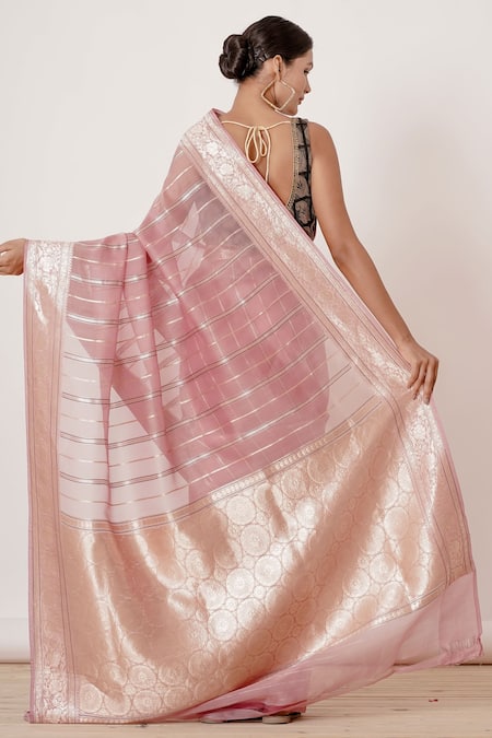 Pink Pure Silk Banarasi Organza Lining Cotton And Shantoon Saree With Blouse