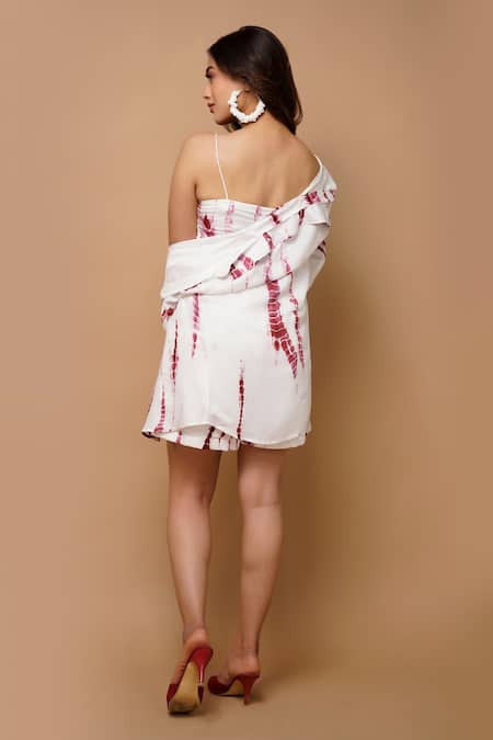 White Cotton Silk Tie Dye Shirt Collar, Top Sweetheart Neck And Shorts Set