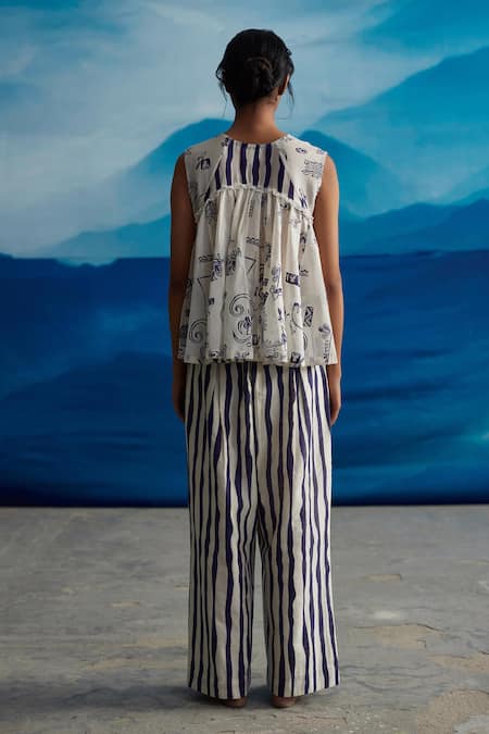 Ivory Chanderi Keyhole Neck Printed Tie Up Top