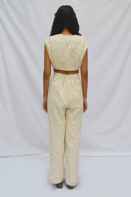 Ivory Cotton Overlap Pleated Pant