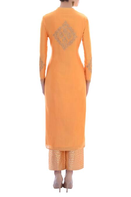 Orange V Neck Embellished Kurta Set