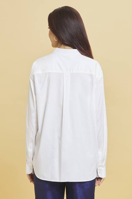 Ivory Cotton Embroidery Collared Placed Heart Pattern Shirt